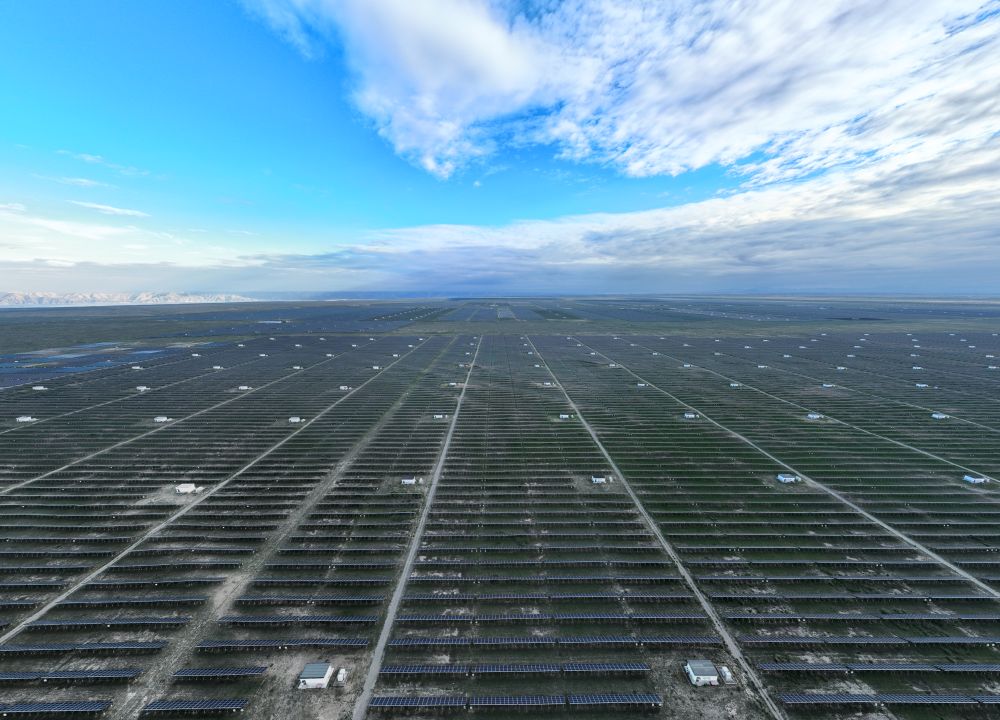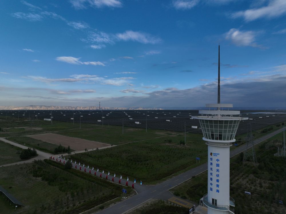 一條條高壓輸電線連接著塔拉灘的“光”與龍羊峽的“水”,實現(xiàn)塔拉灘上經(jīng)濟效益和生態(tài)效益的共贏。
