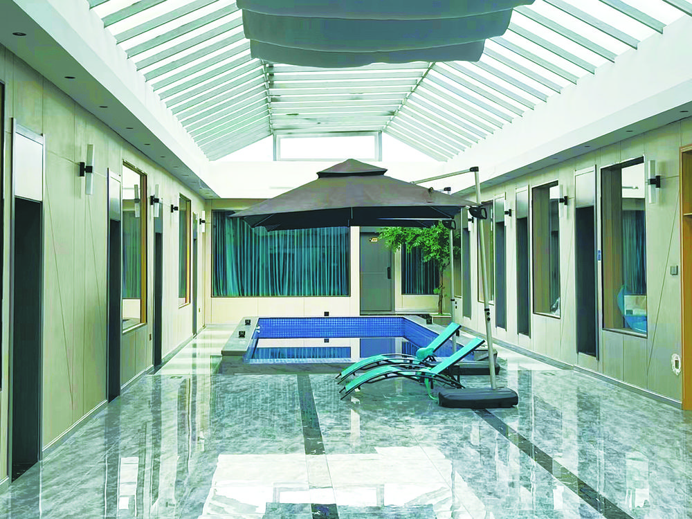 “觀賞完茶卡優(yōu)美的鹽湖景色之后,我在網(wǎng)上找到了這家民宿?!眮碜哉憬挠慰蜅畋蛘f,“這里有茶室、泳池、星空房,一家人住得很舒服,尤其是孩子特別喜歡?!?/p>