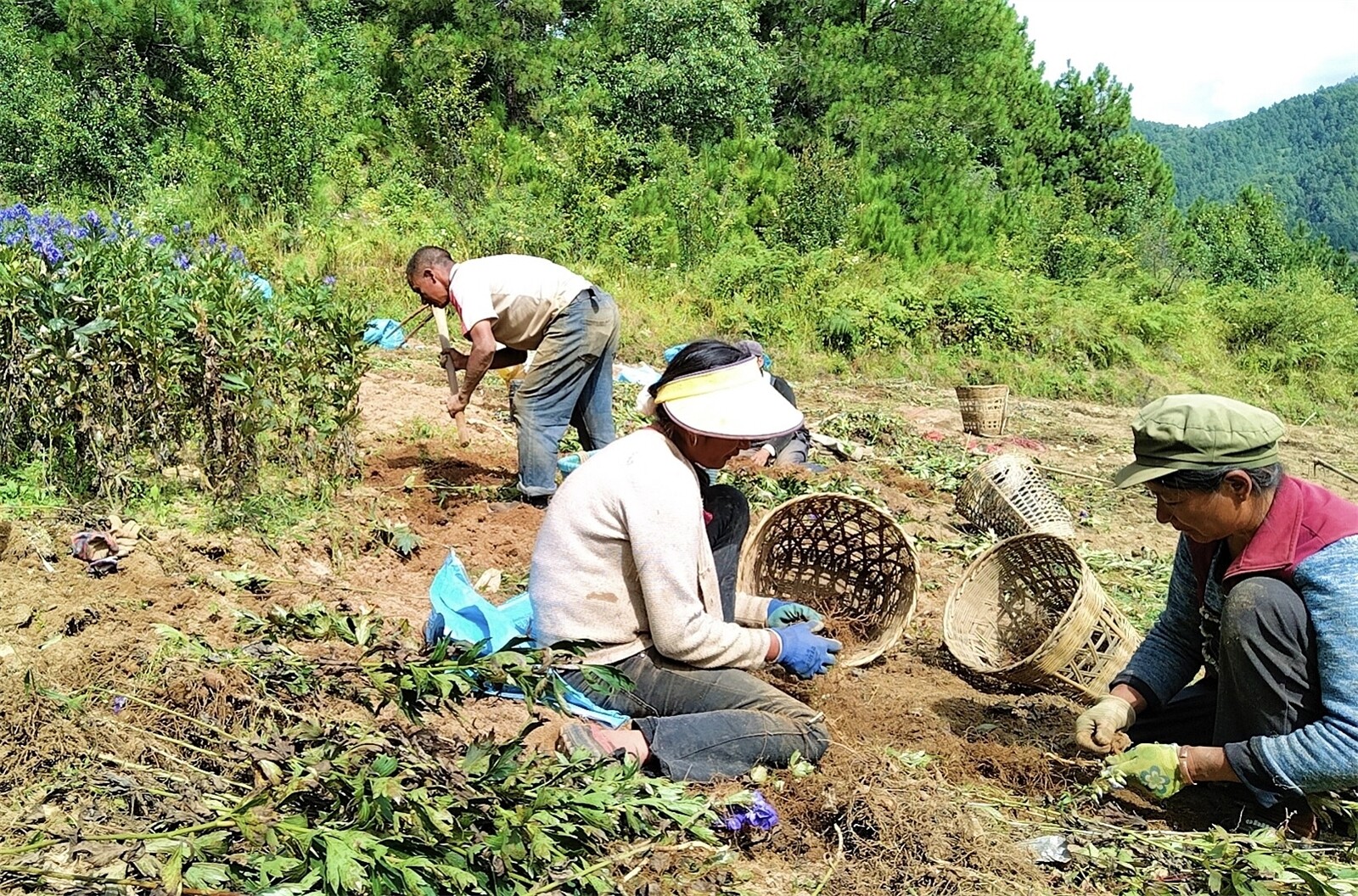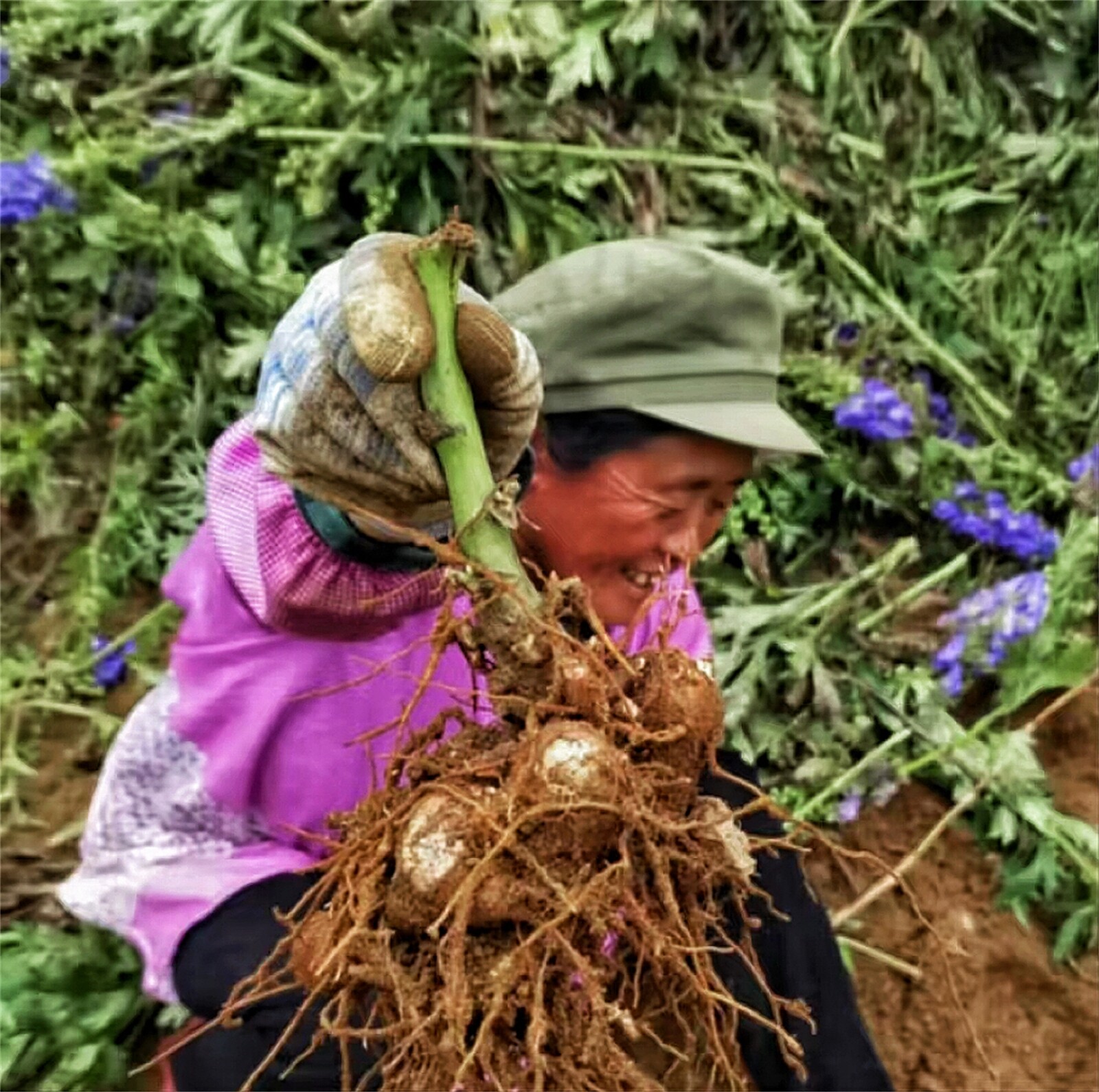 近日,維西傈僳族自治縣攀天閣鄉(xiāng)美洛村400余畝附子喜獲豐收。田間地頭,村民們?nèi)宄扇?,通力協(xié)作,將一顆顆采挖出來的附子收集成籮,集裝成袋,看著眼前的一袋袋附子,村民們都樂得合不攏嘴?!敖衲旮阶赢a(chǎn)量很高呢,按照去年的市場價(jià)今年一畝最多可有2萬收入”美洛村副主任和麗新說。