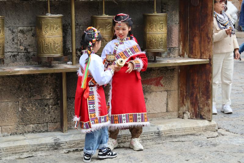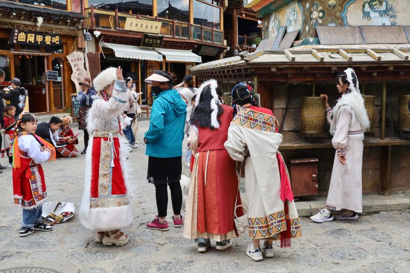 長假期間,獨克宗古城又掀起旅拍熱。走在獨克宗古城里,隨處可見身著藏族服飾、妝容精致的俊男靚女。“一梵攝影”店內(nèi),選服飾、選配飾、做妝造......來來往往的顧客絡繹不絕,“最近每天服務單數(shù)在四五十單左右,是長假之前的一倍多?!币昏髷z影的負責人說道。經(jīng)過化妝造型,游客們即刻變身美麗帥氣的卓瑪扎西,獨具民族特色的造型,配以古城的美景,深受游客的喜愛,大家紛紛以旅拍的方式給自己在旅途中留下一份美好的回憶。