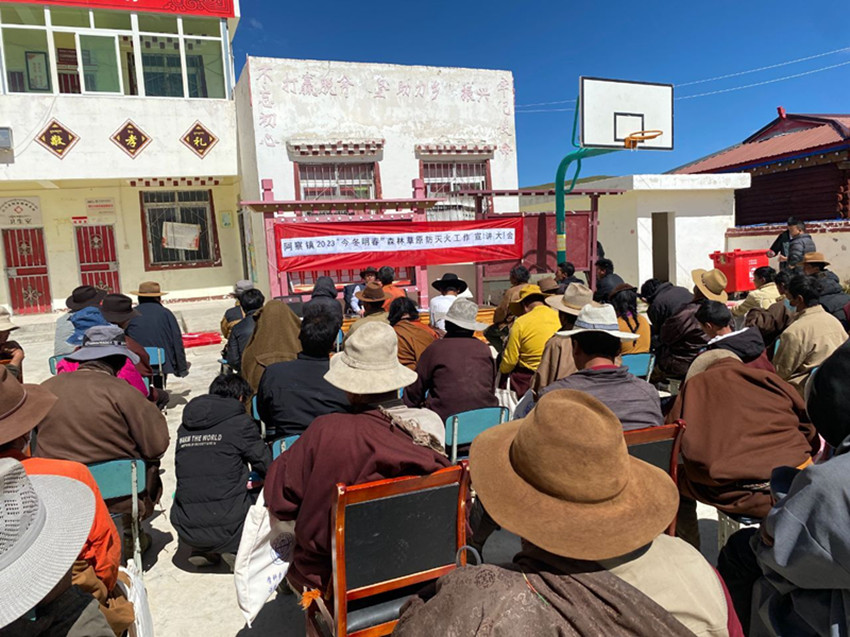 入秋以來,隨著氣溫下降、濕度減弱,森林、草原、濕地的植被含水率降低、干燥易燃,戶外旅游、農(nóng)事用火等野外火源管理難度進(jìn)一步增大,也讓秋冬季森林草原防火工作壓力陡增?!按蠹乙欢ㄒ涀?,進(jìn)山不要帶火種??吹接谢稹⒂袩燅R上上報……”在白玉縣阿察鎮(zhèn)開展的2023年“今冬明春”森林草原防滅火政策宣講大會上,宣講員用通俗易懂的本土方言向村民們反復(fù)叮囑防火注意事項。連日來,該鎮(zhèn)分別組織人員深入轄區(qū)四個行政村開展宣講大會,宣傳森林草原防滅火政策知識,同時以案示警,通過宣講森林草原火災(zāi)典型事例,向群眾普及違反森林草原防滅火相關(guān)法律法規(guī)的嚴(yán)重后果,著力提升大家的防火安全意識,最大限度地預(yù)防和減少森林火災(zāi)的發(fā)生。