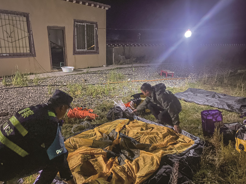 民輔警幫助游客搭建帳篷。