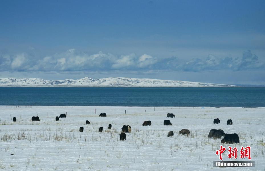 近日,受冷空氣影響,青海省部分地區(qū)迎來降雪,青海湖畔的草場披上了厚厚的白雪,成群牛羊在雪地覓食,與湛藍的湖水、遠處屹立的雪山構(gòu)成一幅幅靜謐柔美的生態(tài)畫卷。