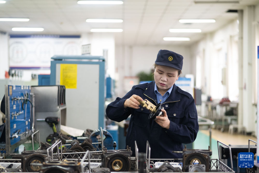 10月12日,在中國(guó)鐵路青藏集團(tuán)有限公司西寧東車輛段制動(dòng)班組,馬婷給120閥配件加潤(rùn)滑脂。新華社記者 張龍 攝