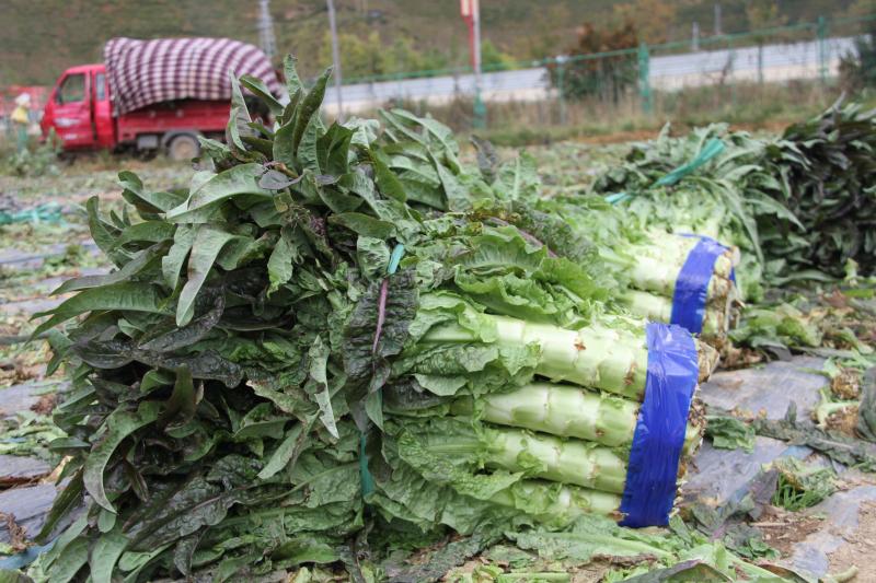 時下,正是萵筍成熟收獲的季節(jié)。在香格里拉市解放村乃日村民小組的萵筍地里,一棵棵青翠欲滴的萵筍把土地染得綠意濃濃,豐收的喜悅撲面而來。菜農(nóng)正在采收萵筍,收割、擇摘、打捆、稱重、搬運、裝車,一套流程下來一氣呵成,現(xiàn)場呈現(xiàn)出一派繁忙熱鬧的景象。