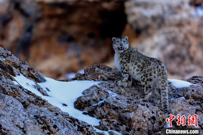 資料圖為2017年,攝影師在祁連山國家公園青海片區(qū)拍攝到的雪豹。鮑永清 攝