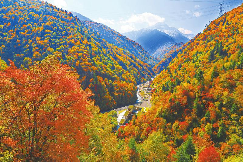四川省阿壩州黑水縣迎來一年中最美的冰川彩林季