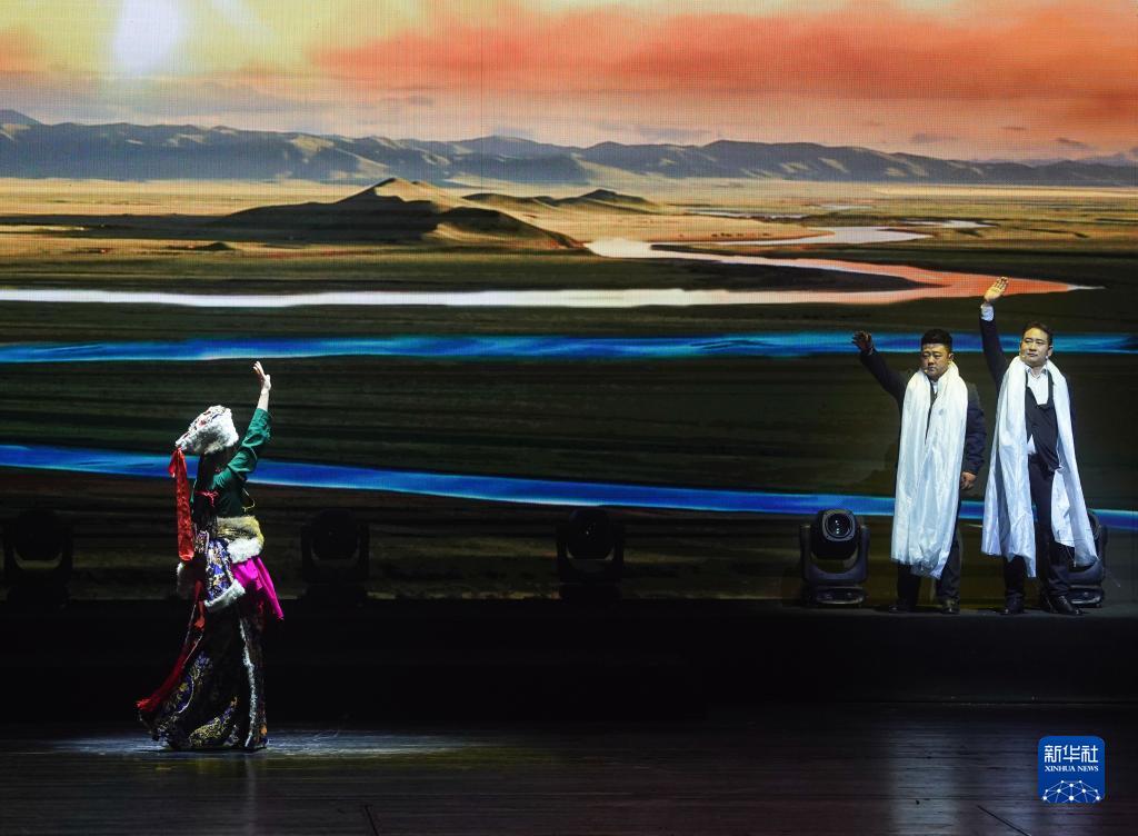 10月26日,青海省海南藏族自治州大型原創(chuàng)民族音樂劇《遇上你是我的緣》在江蘇南京上演。音樂劇以援青干部真實經(jīng)歷和典型事跡為原型,講述他們立足高原、無私奉獻的感人故事。