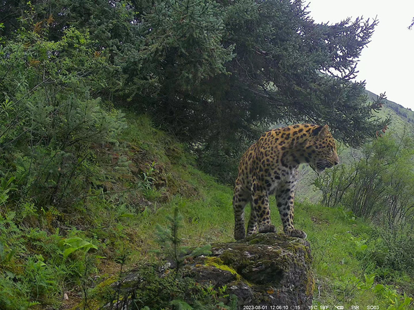 紅外相機影像資料顯示,一只金錢豹正走到石頭上眺望,一只棕熊媽媽正帶著幼崽經過,一群白唇鹿在紅外相機前悠閑好奇的觀望……從肉食性、雜食性到植食性,野生動物們在鏡頭里的不時亮相,一定程度證明保護區(qū)內生態(tài)系統(tǒng)功能健康,食物鏈結構完整。