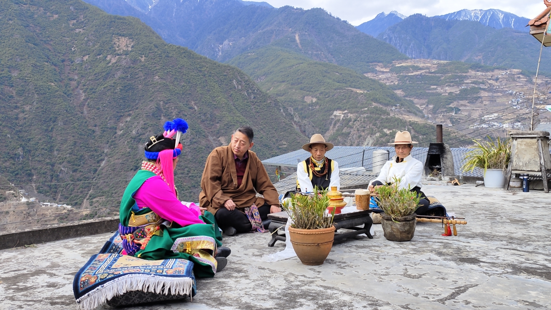 迪慶州廣播電視臺記者扎西鄧珠在維西縣巴迪鄉(xiāng)采訪弦子藝人。