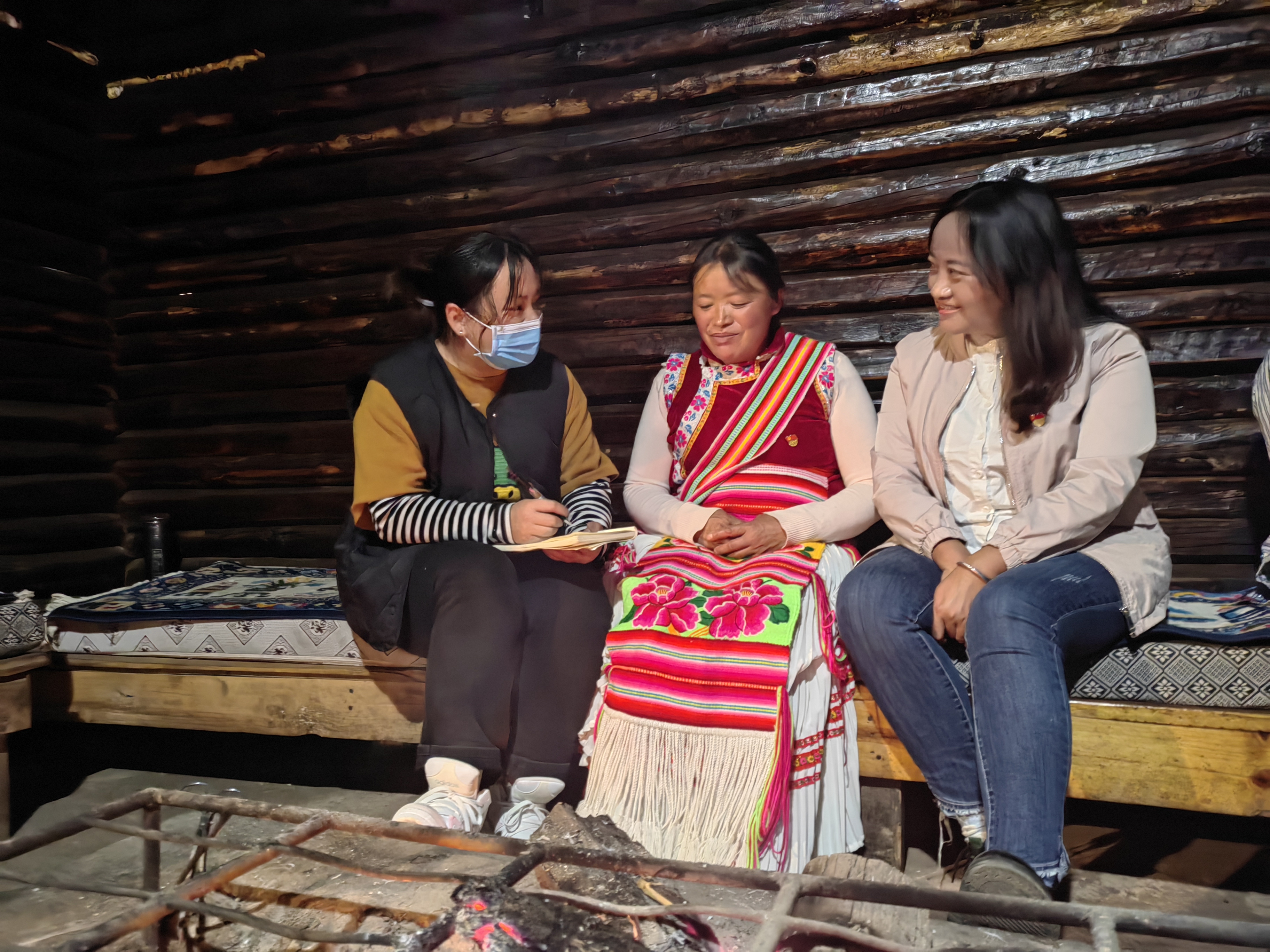 迪慶日報社記者張燕深入基層采訪傈僳族婦女余海芝。