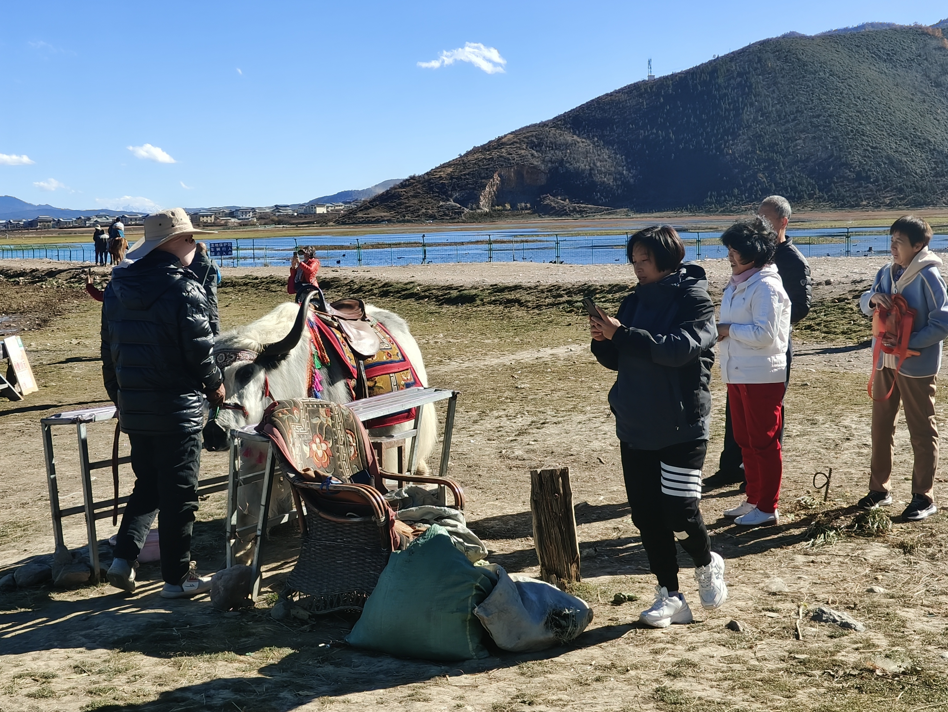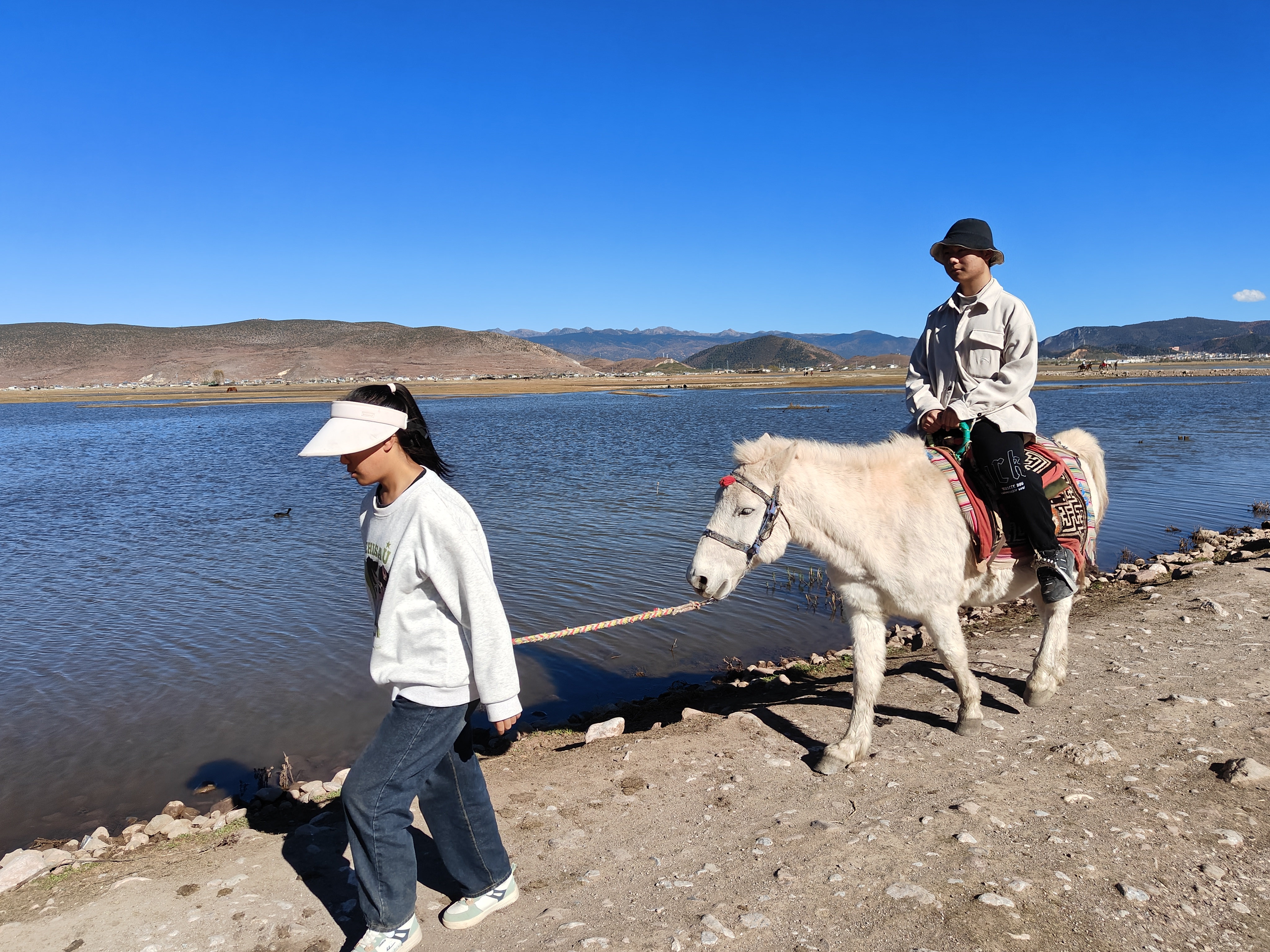 進(jìn)入11月,迪慶的氣溫雖然持續(xù)下降,但并不影響游客們的游玩熱情。納帕海陽(yáng)光明媚、碧波蕩漾,不少游客選擇到納帕海環(huán)湖游,騎行的、騎馬的、賞景的、拍照的游客絡(luò)繹不絕。圖為游客在納帕海濕地騎馬,體驗(yàn)藏族馬背文化魅力。