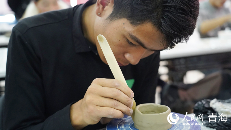 當(dāng)?shù)厝罕妼W(xué)習(xí)黑陶制作技藝。人民網(wǎng)記者 楊啟紅攝