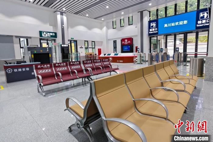 位于綿陽安州區(qū)高川鄉(xiāng)的川青鐵路高川站,站內(nèi)橋隧相連,該站為小型車站,車場規(guī)模為2臺4線。走進站房,室內(nèi)雖小但設(shè)施與大車站一樣,車站造型汲取了川西地區(qū)建筑元素,凸顯高海拔寒冷地域特色。