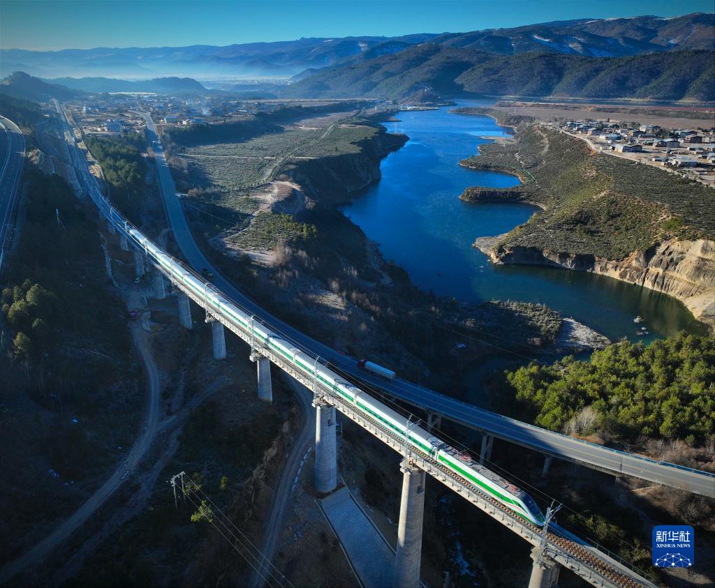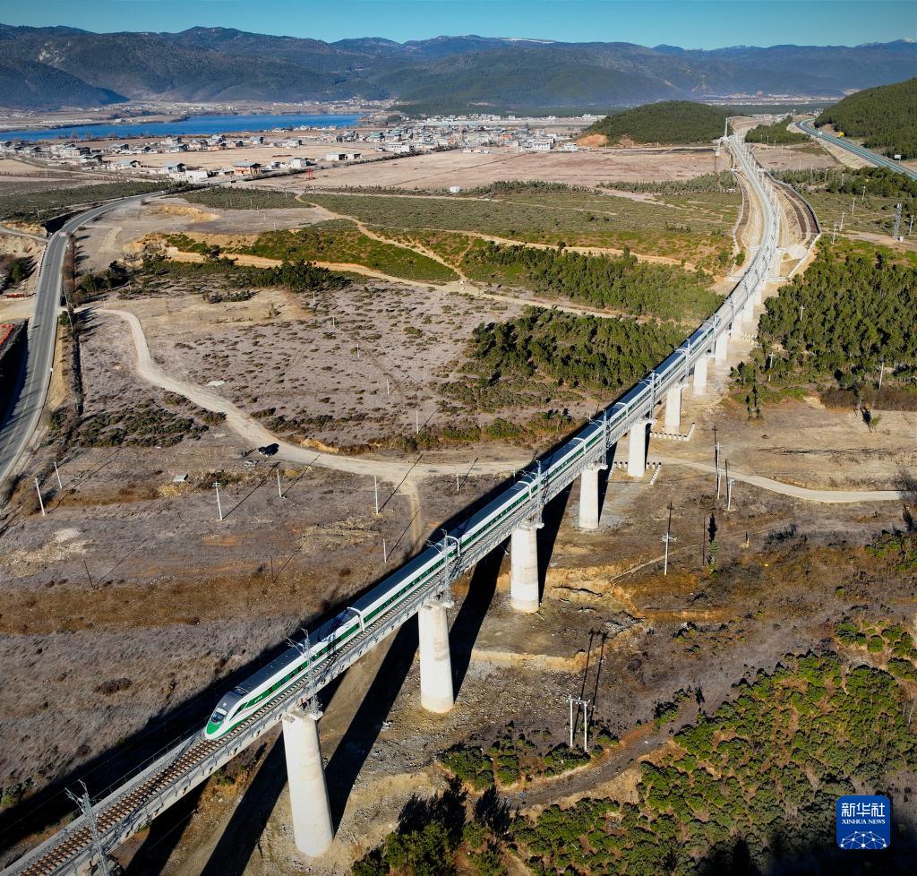 11月26日,列車行駛在麗香鐵路線上。新華社記者 胡超 攝