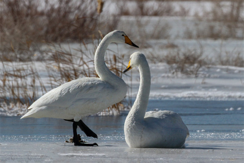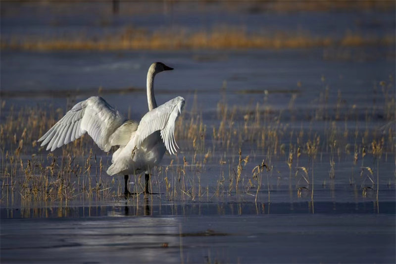 越冬大天鵝為柴達(dá)木盆地增添一份美麗與靈動。安子 攝