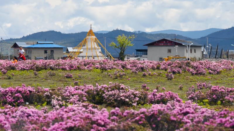 每年5月下旬至6月中旬,小中甸草原就會被多彩絢爛的杜鵑花、狼毒花以及各種不知名的小花小草包圍,變成一片花的海洋,吸引來自各地的游客駐足。這時的小中甸,每個角度都是美景,花海連著傳統(tǒng)藏族民居,以及遠(yuǎn)處的雪山和森林,恍若走進(jìn)了神話中的仙境,這里也是人們拍寫真照、婚紗照的絕好取景地。