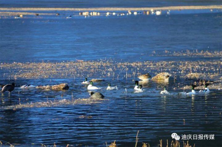 候鳥們一會(huì)兒在水面嬉戲覓食