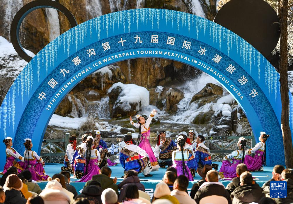1月4日,演員在中國(guó)九寨溝第十九屆國(guó)際冰瀑旅游節(jié)開(kāi)幕式上表演。新華社記者 王曦 攝