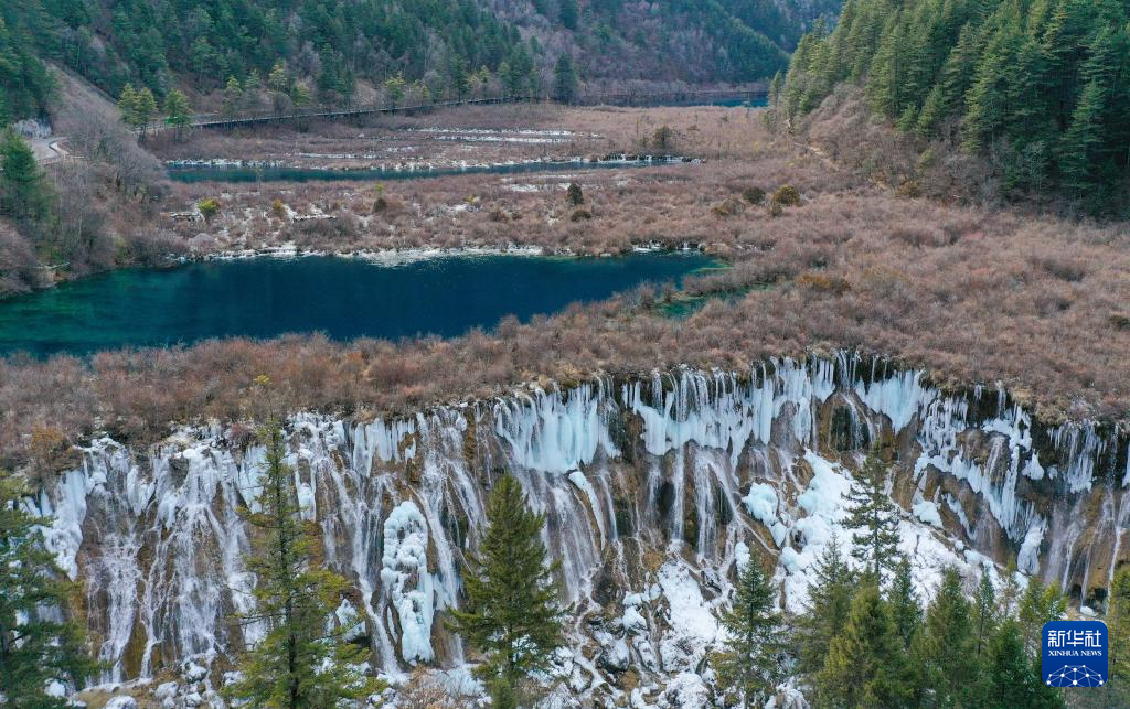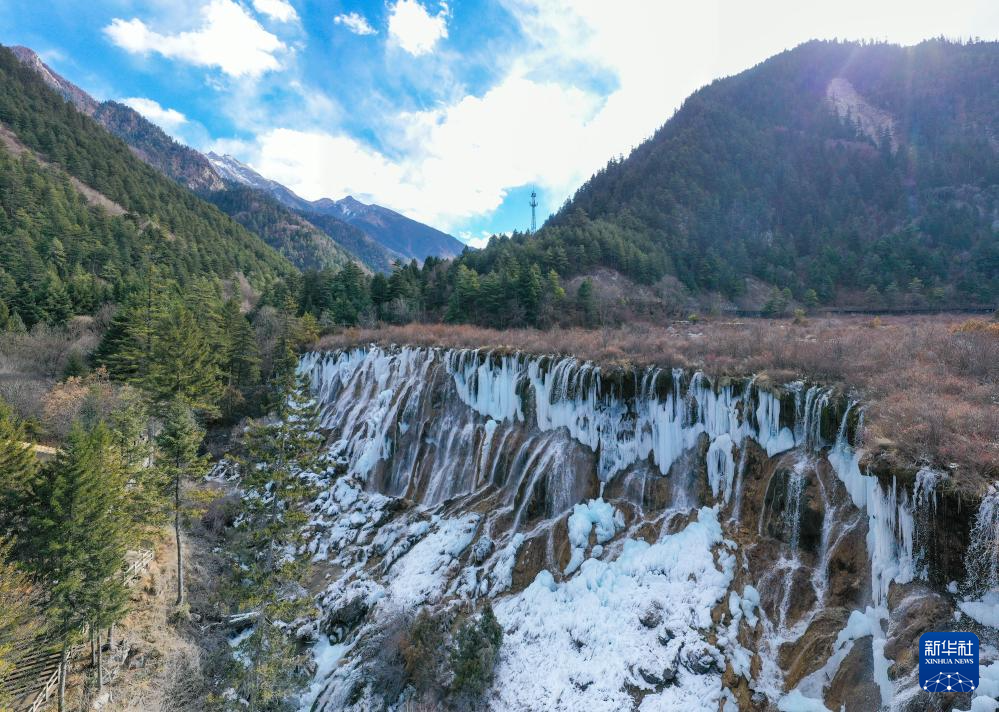 這是1月4日在四川省九寨溝風(fēng)景名勝區(qū)拍攝的諾日朗瀑布形成的冰瀑景觀(無(wú)人機(jī)照片)。新華社記者 王曦 攝
