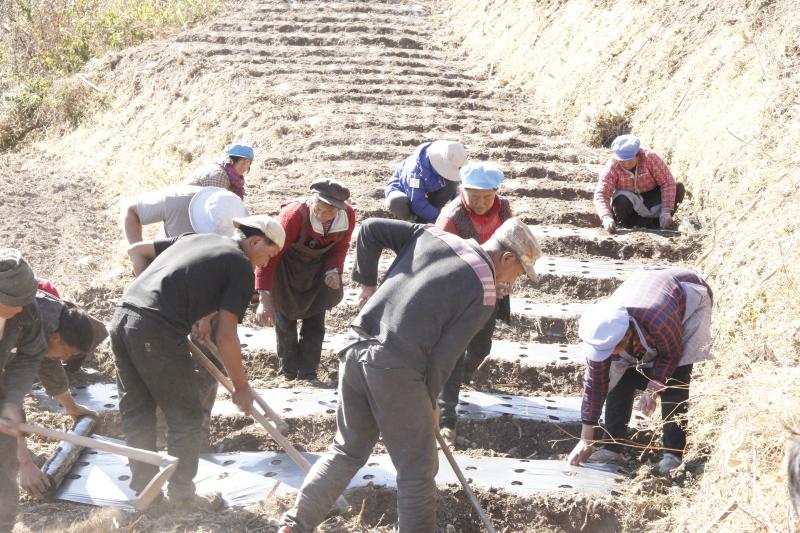 深冬時(shí)節(jié),維西縣中路鄉(xiāng)拉嘎洛村村民正在種植木香,田間地頭一派忙碌的景象。