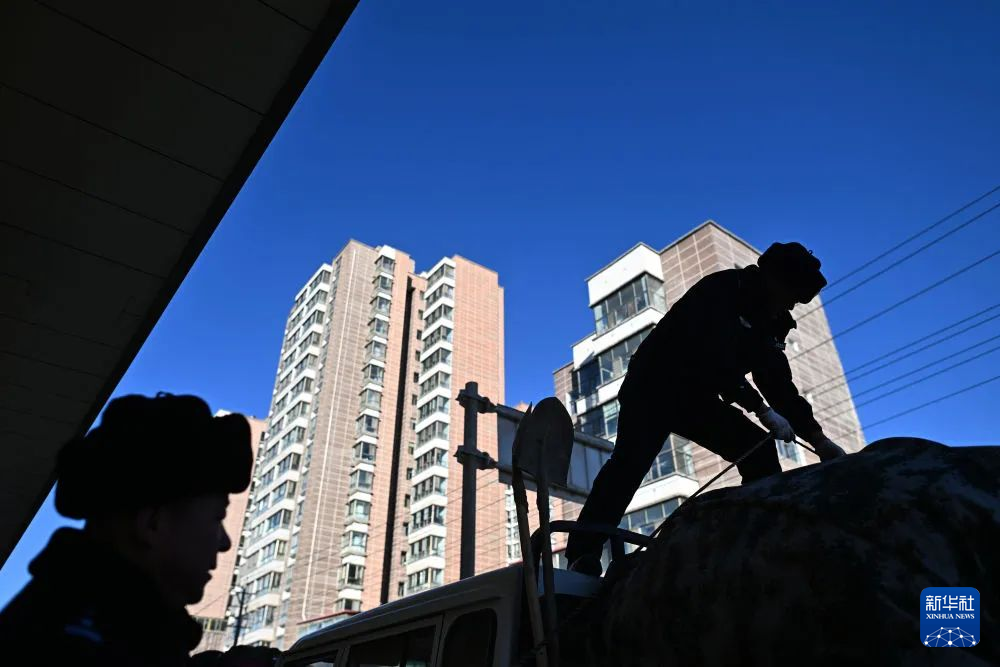 在青海省海西蒙古族藏族自治州格爾木市,可可西里森林公安局兩名巡山隊(duì)員正在裝車(1月18日攝)。新華社記者 張宏祥 攝