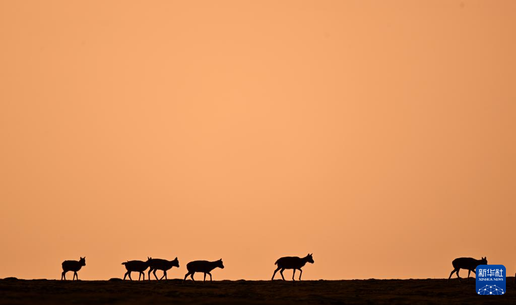 一群藏羚羊在可可西里卓乃湖區(qū)域活動(dòng)(2023年6月18日攝)。新華社記者 張宏祥 攝