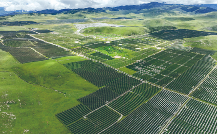 不只是暫時的就業(yè),更有長遠的利益。光伏發(fā)電建設(shè)租賃牧民草場,租金為每年200元/畝,為群眾產(chǎn)生很大一筆固定收入。同時,以生態(tài)保護助力鄉(xiāng)村振興,國家電投同步開展甘孜實證基地建設(shè)與“光伏+生態(tài)修復”研究,通過“綠色施工+定量監(jiān)測+主動修復”技術(shù),開展技術(shù)組合實證、生態(tài)修復實證。“光伏+牧草+養(yǎng)?!睂崿F(xiàn)三重產(chǎn)業(yè)疊加,帶動鄉(xiāng)村振興、生態(tài)治理、綠色交通等產(chǎn)業(yè)集群實證方案落地,建設(shè)區(qū)高原生態(tài)環(huán)境可控在控,持續(xù)向好,走上生態(tài)效益與經(jīng)濟效益互利共贏的“陽光大道”,讓群眾盡享“陽光紅利”。