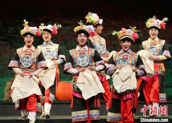 2021年5月17日晚,甘肅甘南州藏族歌舞劇院演出的音樂(lè)劇《達(dá)瑪花開(kāi)》在蘭州首演。(資料圖)閆姣 攝