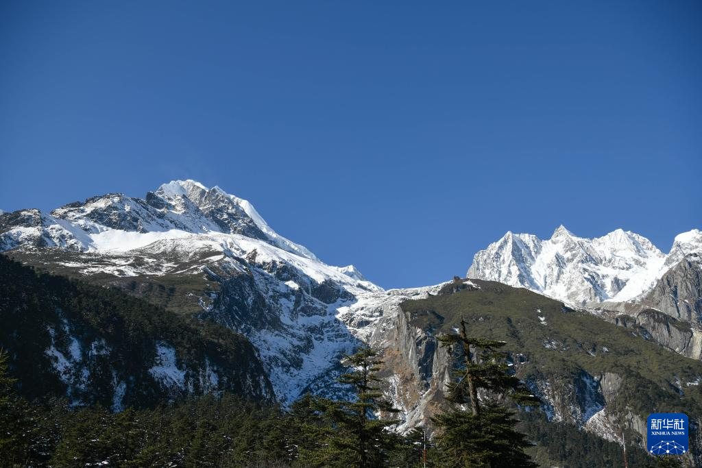 金燦燦的陽光照在金銀峰、貢嘎雪山上。記者 劉忠俊 攝