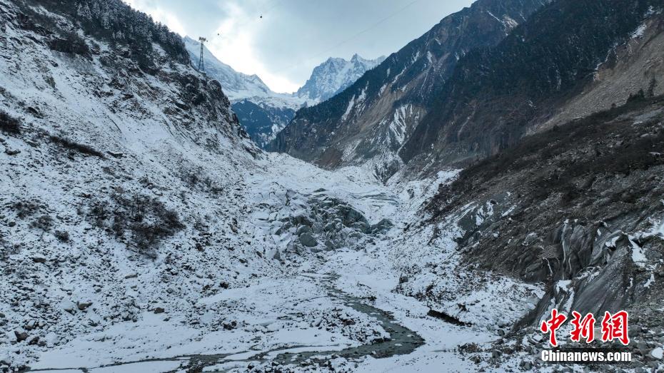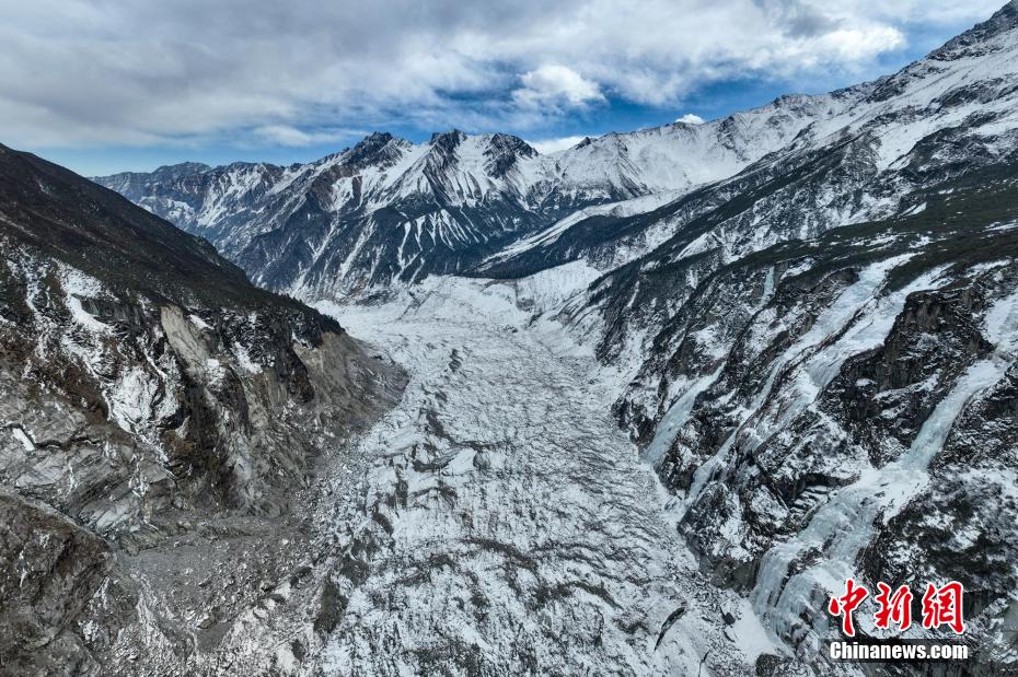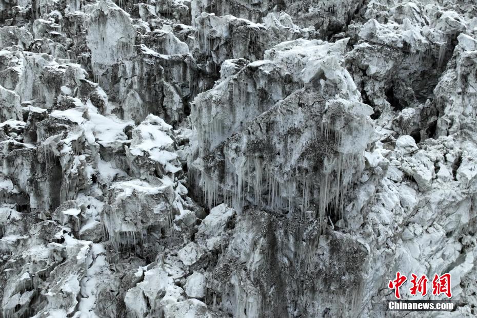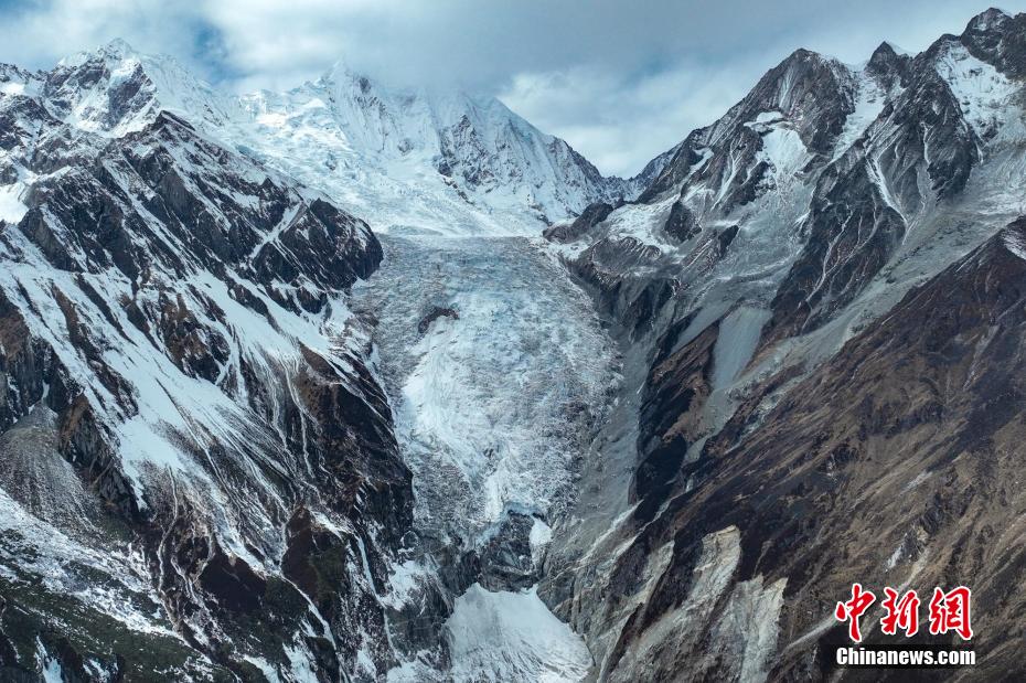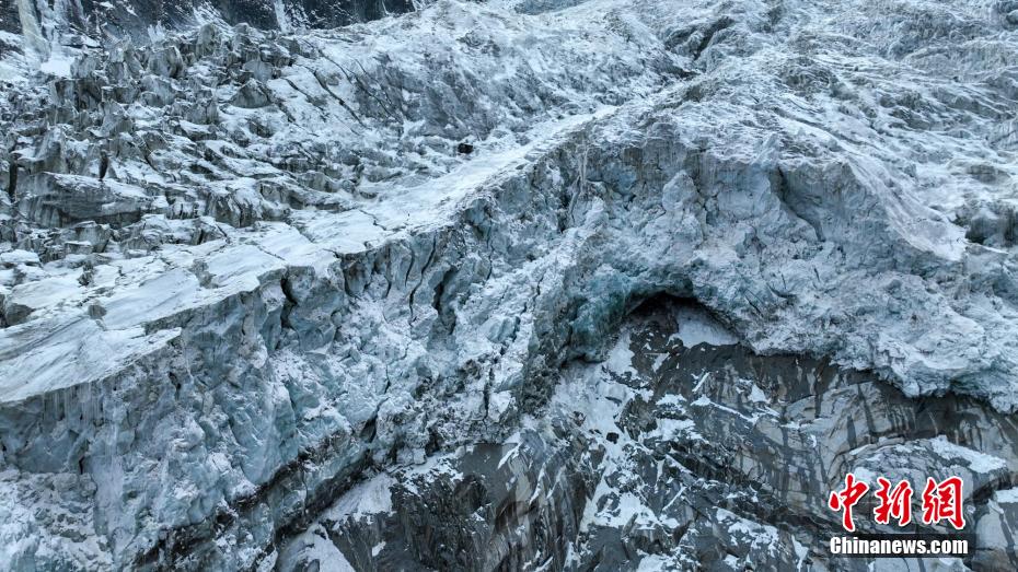 2月2日,四川省甘孜藏族自治州瀘定境內(nèi),一場雪后的貢嘎山披上了厚厚的“白紗”,在貢嘎山東坡順山而下的冰川沿海螺溝山谷綿延10多公里,就像一條“巨龍”盤在山谷中,十分壯觀。貢嘎山坐落于橫斷山系大雪山中段,主峰海拔7756米,被譽為蜀山之王。海螺溝冰川也是貢嘎山數(shù)十條冰川中規(guī)模最大、形態(tài)最美的一條。經(jīng)歷了2022年“9·5”瀘定地震后,海螺溝景區(qū)道路等重建工作完成,步游道、旅游服務設施升級,游客逐步回升。航拍鏡頭下的海螺溝冰川粒雪盆下端的“冰川冰”。記者 劉忠俊 攝