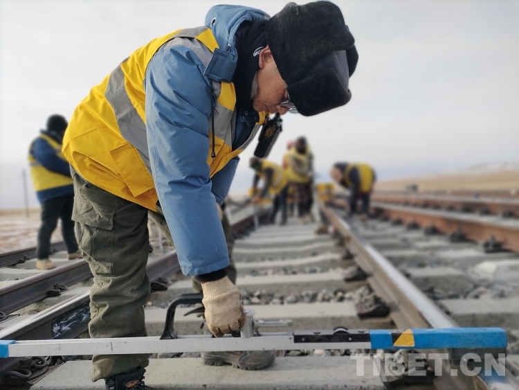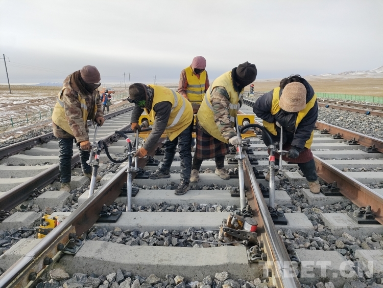 中國西藏網(wǎng)訊 2月9日,大年三十,中國鐵路青藏集團有限公司格爾木工務段沱沱河線路車間通天河線路工區(qū)的10名職工驅(qū)車1小時來到青藏鐵路塘崗站,對鐵路線路設(shè)備病害進行整治。