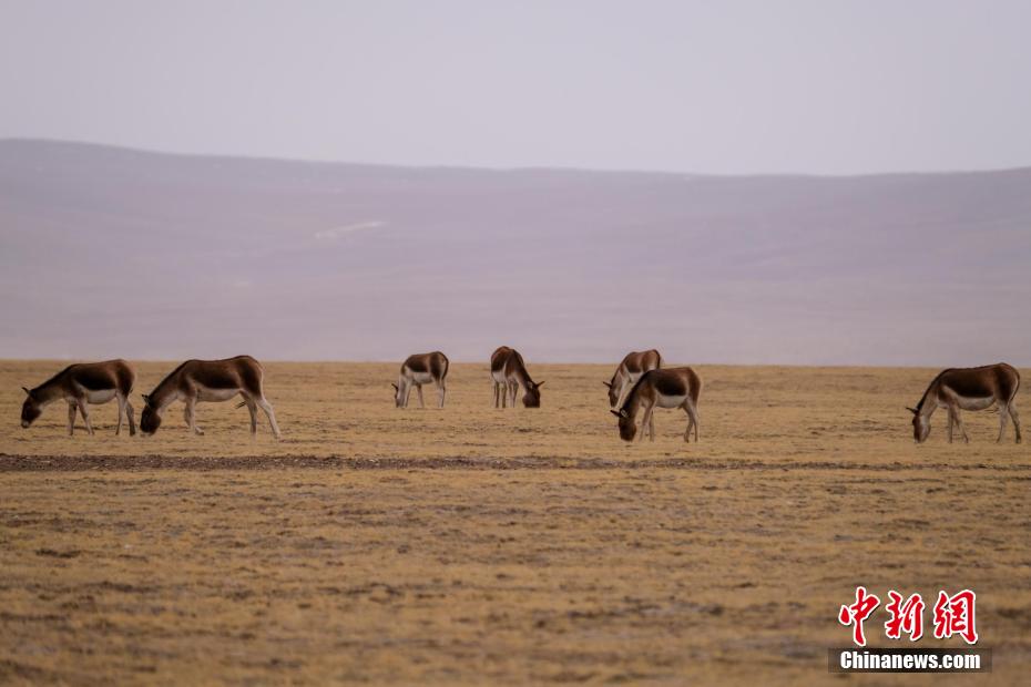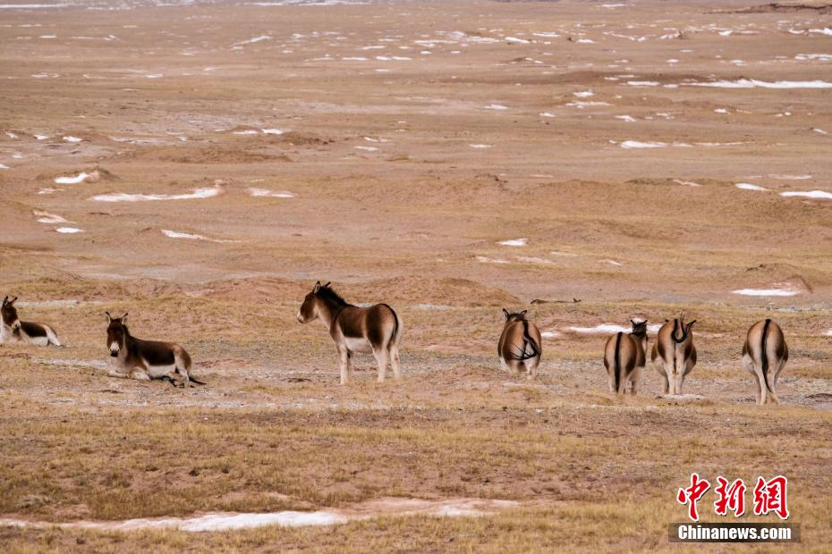 2月20日,青藏公路西藏安多縣境內(nèi)的藏野驢群。江飛波 攝