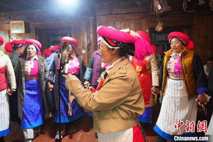 賓客們亦不斷拍攝短視頻、開設(shè)網(wǎng)絡(luò)直播,高原上曾鮮為人知的歡樂景象,隨著信號傳向雪山之外,讓遠方的人們分享屬于藏族的幸福時光。