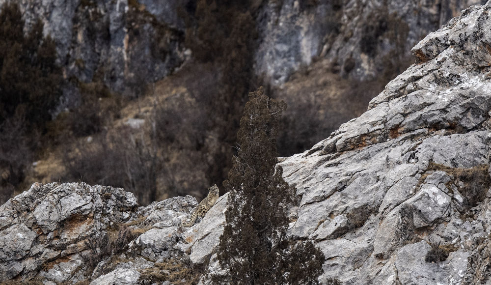 “2021年的一個周末,我?guī)е胰穗S便轉(zhuǎn),進入雪豹溝后在河灘看見了三只雪豹。雪豹看到我們沒跑,慢悠悠地沿著河道轉(zhuǎn)悠?!彼骷余l(xiāng)干部西然生格說,鄉(xiāng)上干部的手機里都有自己拍攝的雪豹照片,目睹雪豹已經(jīng)不是“奢求”。