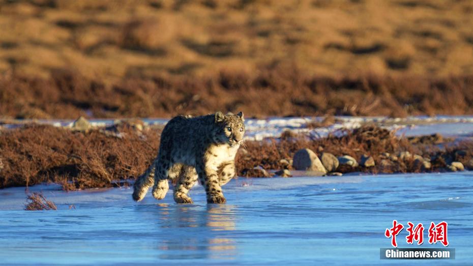 近日,祁連山國(guó)家公園簽約攝影師在青海省海北州祁連縣默勒鎮(zhèn)境內(nèi)的大通河畔,拍攝到一只雪豹在冰面上過河的場(chǎng)景。[詳細(xì)]