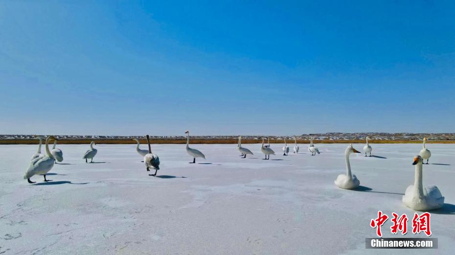 上百只天鵝飛抵柴達(dá)木盆地可魯克湖越冬