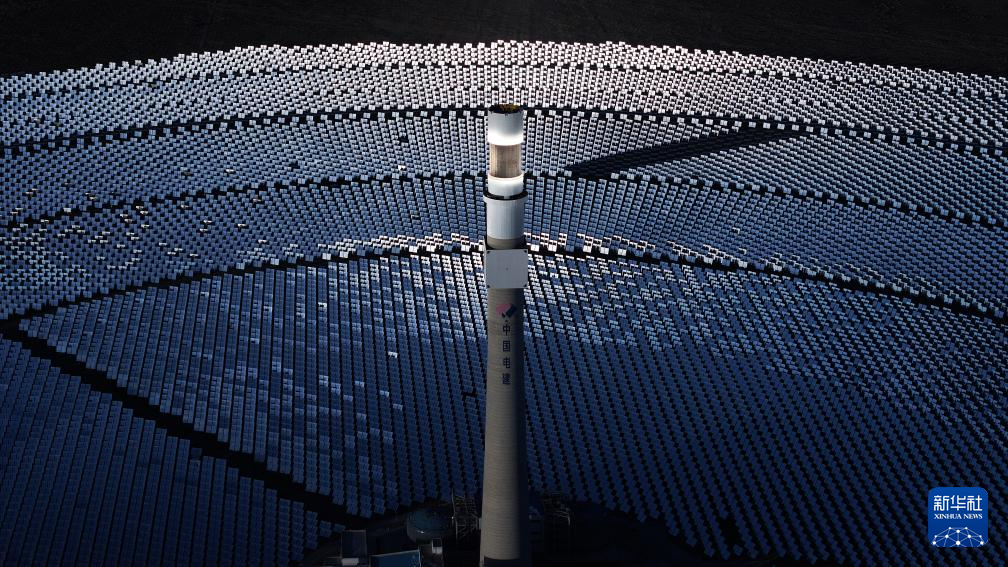 這是2022年6月8日在海西州德令哈市光伏(光熱)產(chǎn)業(yè)園拍攝的光熱電站(無(wú)人機(jī)照片)。新華社記者 范培珅 攝