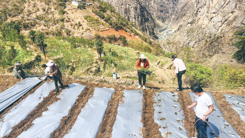 毛菇廠村位于雅礱江環(huán)繞錦屏山的大急彎上,全村平均海拔1900米,地處高山峽谷地帶,過去一直有村民將自家種植的玉米、白菜及各種蔬菜自行銷往縣城,但這種銷售方式相對(duì)傳統(tǒng),零星分散。如何在產(chǎn)能較低的傳統(tǒng)農(nóng)業(yè)中找到“特色細(xì)分領(lǐng)域”集中發(fā)力?2023年,煙袋鎮(zhèn)黨委等進(jìn)行多方調(diào)研后,決定依托該村土壤資源優(yōu)勢(shì),加速土地流轉(zhuǎn),“匯小田變大田”。