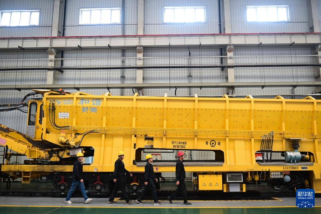 4月25日,中國鐵路青藏集團有限公司西寧工務(wù)機械段職工在檢查車鉤。新華社記者 張龍 攝