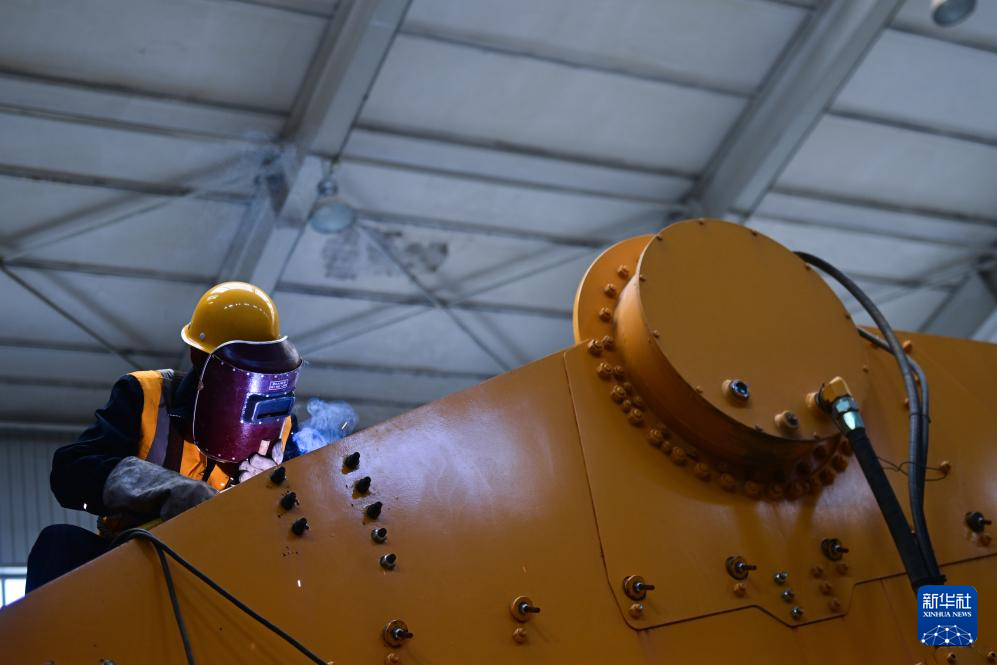 4月25日,中國鐵路青藏集團有限公司西寧工務(wù)機械段職工在焊接振動篩。新華社記者 張龍 攝