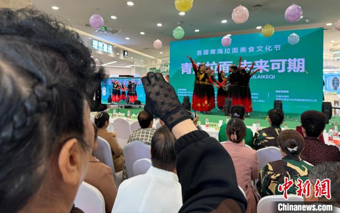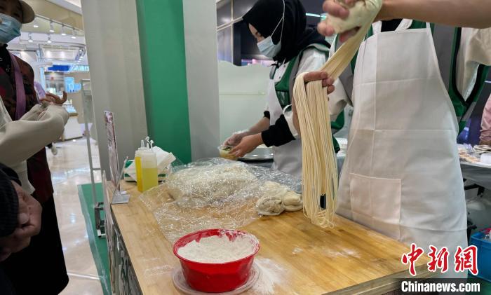活動(dòng)現(xiàn)場(chǎng),人頭攢動(dòng),展示區(qū)展出拉面成品,可品嘗手工拉面,亦有牦牛肉干、甜醅等青海特色美食,相關(guān)從業(yè)人員“各顯神通”,吸引來往行人。