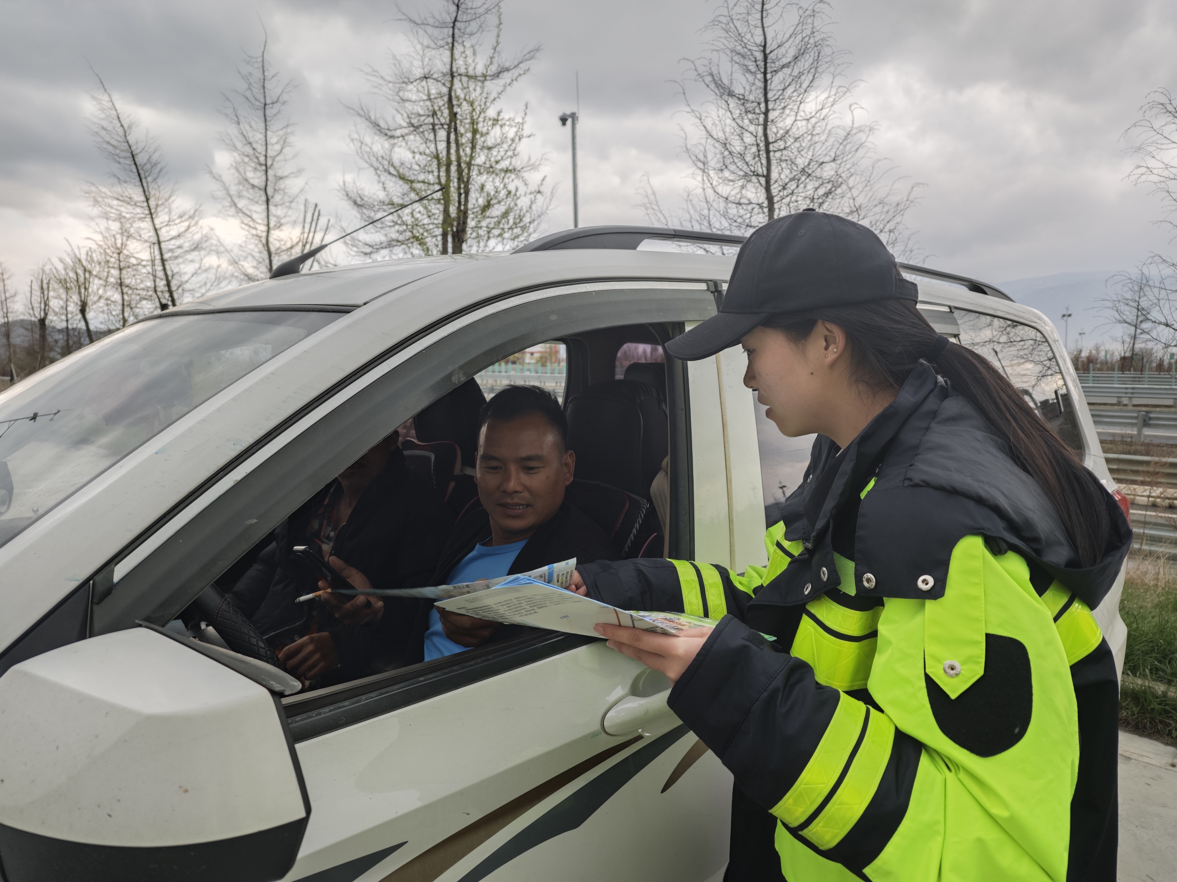 通過面對面宣講、發(fā)放交通安全及路況提示卡的方式,廣泛宣傳交通安全文明常識,進行警示教育和安全提示,警示廣大交通參與者關愛生命、文明出行、拒絕交通違法、摒棄交通陋習,確?!拔逡弧奔倨诟咚俟钒踩珪惩ㄓ行颉?/p>