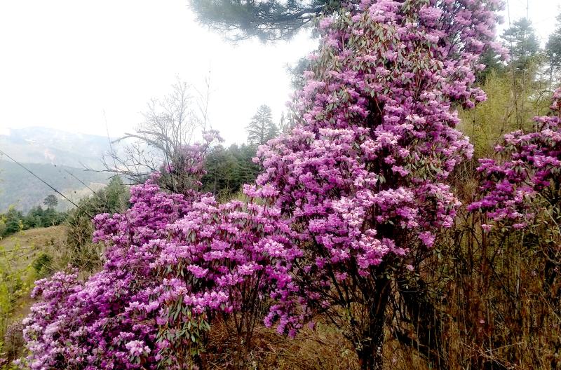 4月底以來(lái),香格里拉杜鵑花進(jìn)入盛開(kāi)期。在虎跳峽鎮(zhèn)紅旗村至小中甸鎮(zhèn)的國(guó)道214線沿線,漫山遍野的杜鵑花把一座座山頭裝扮得如詩(shī)如畫(huà),讓人流連忘返。