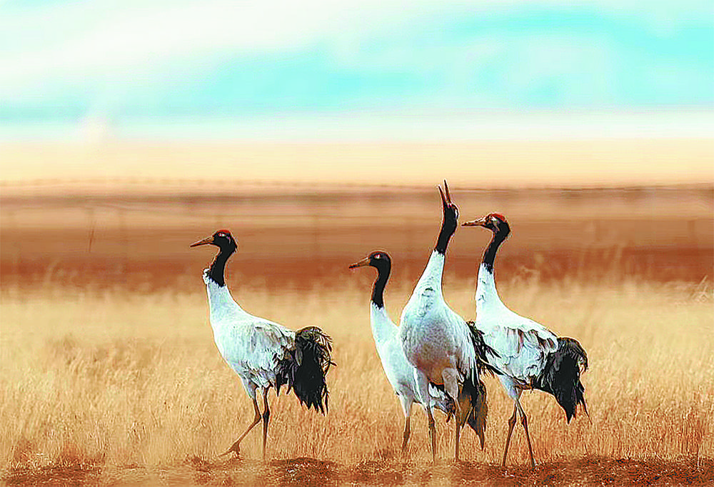 隆寶國家級自然保護區(qū)的黑頸鶴。資料圖片