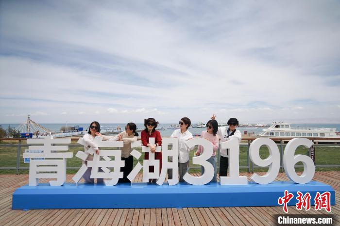 圖為游客在青海省海南藏族自治州共和縣青海湖二郎劍景區(qū)內(nèi)打卡拍照。馬銘言 攝