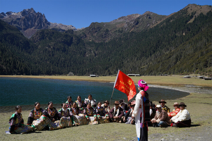 香格里拉市小中甸鎮(zhèn)和平村拉扎村民小組36歲的村民吹丹黨齡11年,他每年都參加在牧區(qū)上的黨課,這場(chǎng)黨課經(jīng)常在雪山牧場(chǎng)、高山峽谷、海拔4000多米的蟲草山等地開展,以播放視頻、理論宣講、開座談會(huì)等形式,用群眾聽得懂的民族語(yǔ)言宣講黨的民族宗教政策、民族團(tuán)結(jié)進(jìn)步知識(shí)、鑄牢中華民族共同體意識(shí)等。他感慨地說:“村里人都是藏族,特別是老一輩,沒什么文化,大多聽不懂漢語(yǔ)。我也只有小學(xué)文化,平時(shí)看電視很多語(yǔ)句也聽不太明白。流動(dòng)黨校的老師用通俗易懂的民族語(yǔ)言,親切地宣傳黨的政策法規(guī),大家不但聽得懂,而且也喜歡聽。”