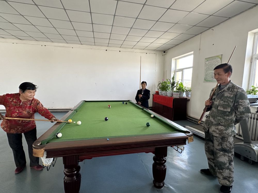 “在這兒吃住免費(fèi),飯有人做,衣服有人洗,每月還有100多元的養(yǎng)老金和零花錢?!痹诨顒邮依?,王金蓮手握臺球桿,熟練推桿。入住敬老院后,運(yùn)動成了她的生活日常。