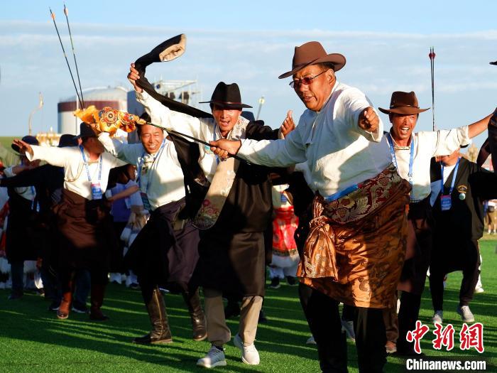 7月20日至23日,第九屆中國·青海國際民族傳統(tǒng)射箭精英賽在青海省海北藏族自治州剛察縣舉行,來自柬埔寨、蒙古國、波蘭、俄羅斯、中國等22個國家和地區(qū)的1100名射箭高手齊聚一堂,展示精湛射箭技藝。本屆賽事設(shè)置現(xiàn)代傳統(tǒng)弓、復(fù)合弓、反曲弓及牛角弓4個弓種,設(shè)置“現(xiàn)代傳統(tǒng)弓混合團(tuán)體和個人”等5個競賽項目。該賽事已成為中國民族傳統(tǒng)射箭比賽中規(guī)格級別最高、民族選手最多、參賽國家和地區(qū)最廣、弓種和項目最全的國際性品牌賽事。圖為7月20日青海省海北州運(yùn)動員在青海剛察舉辦的入場式上歡呼。中新社記者 李雋 攝