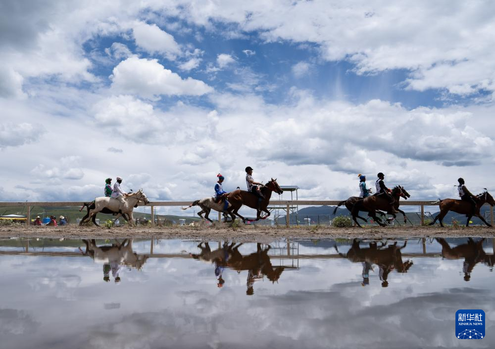 7月30日,在理塘縣“八一”賽馬場,選手參加中馬10000米比賽。新華社記者 江宏景 攝